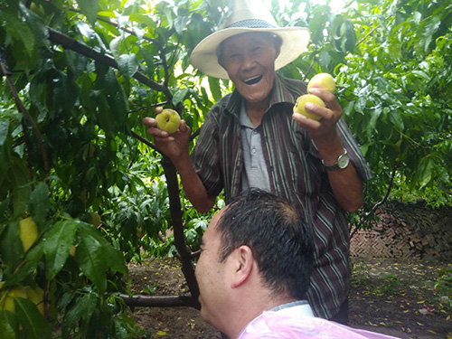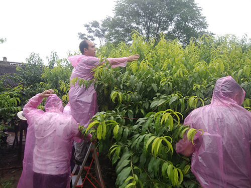 发表时间:2020-06-19 17:36 连续几天的大雨,封丘县鲁岗镇齐寨村70多岁的五保贫困户齐运利家,已经熟透的桃子摇摇欲坠。即使多等一天,老人辛辛苦苦期盼了一年的桃子钱,也可能损失殆半。何况雨下个不停,桃子如何采摘和销售?年逾古稀的独居老人,确实遇到了不小的难题。 想起几年来一直关注其生活冷暖的驻村工作队,束手无策的老人觉得有了依靠。6月16日凌晨5点,驻村工作队接到了老人的求助电话。 贫困户的求助电话,就是工作队的行动指令。工作队随即向派出单位——市职业病防治研究所有关领导做了汇报。该所党总支书记刘纪青高度重视,派遣该所“蒲公英”志愿者服务队的志愿者和帮扶责任人,冒雨赶赴齐寨村,协助驻村工作队开展帮扶活动,采摘、认购“爱心桃”,解贫困户燃眉之急。 摘桃时,大家雨水伴着汗水,热情高涨;买桃时,大家乐于奉献、尽力相助。不大的桃林中,影影绰绰、忙忙碌碌的一群“雨衣”,成了一道靓丽的风景线。 满树的桃子终于被销售一空,五保贫困户齐运利老人开心地笑了。