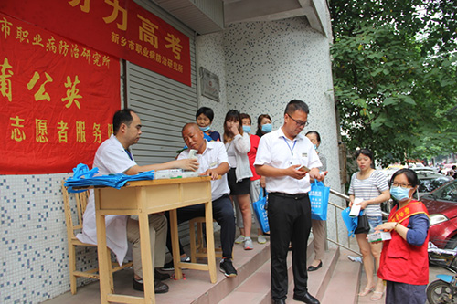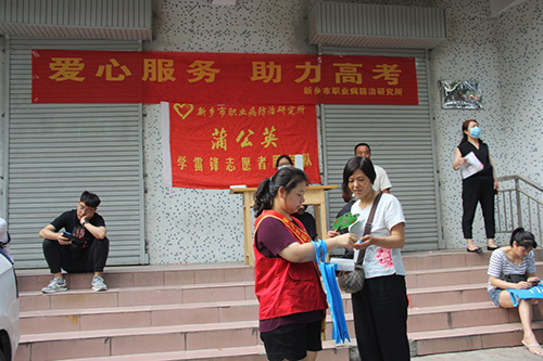 发表时间:2020-07-08 17:37 近年来,为进一步更好地服务高考,新乡市职防所每年都会在高考期间开展高考志愿服务活动。 7月8日早上7点多,“蒲公英”学雷锋志愿者服务队在新乡市第三中学考点外设置高考服务台,为守候家长提供免费医疗服务和赠发风油精、清凉油等防暑降温物品,并提醒过往市民不大声喧哗,为考生营造良好的环境。 当天,虽然天气炎热,但是志愿者们坚守岗位,用自己的行动,为参加高考的家庭送去了及时的帮助和方便。